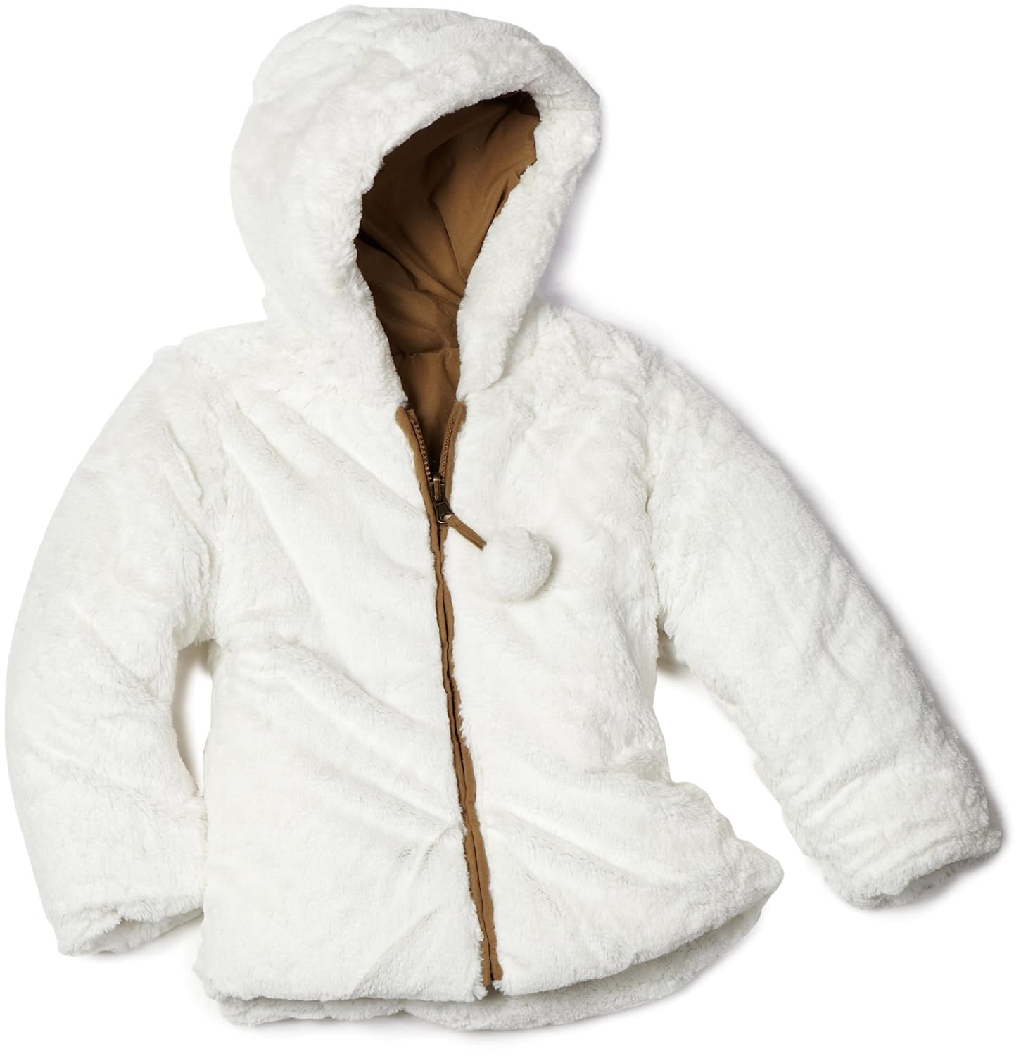 This heavyweight jacket reverses from faux suede to all over faux fur. It also has floral embroideries and faux fur trim on the cuffs and hem